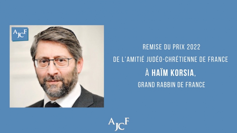 L'AJCF entend honorer en Haïm Korsia une personnalité engagée, à la suite de Jules Isaac et du Grand Rabbin Jacob Kaplan, dans une œuvre de paix et de réconciliation. Dans notre pays si fracturé aujourd'hui, il est une référence.