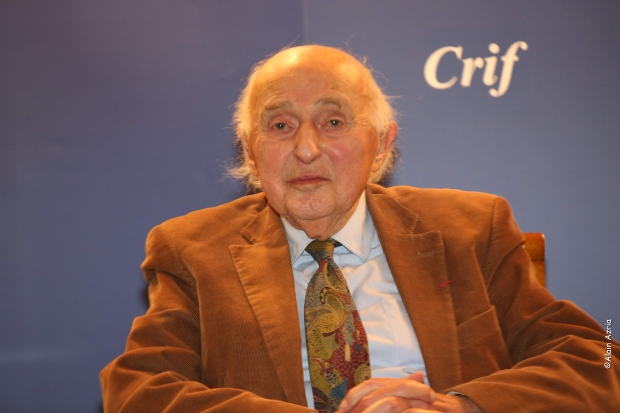 Il y va maintenant chaque année, avec des scolaires, et y emmène tous ses petits-enfants, dès qu’ils atteignent l’âge de 15 ans. « Le dernier, Anton, j’ai un peu triché, je l’ai emmené quand il avait 13 ans. Il en reste deux. Si je ne suis pas là pour une raison ou une autre [la salle rit doucement, affectueusement], je sais qu’on les emmènera. Je peux partir paisiblement, à 39 ans. » On voit bien que cela lui plaît, à Elie Buzyn, de faire sourire son public, qui compte quelques classes de lycéens, après ce récit qui noue la gorge. « Méfiez-vous des extrémistes ! Ils sont faux ! Il faut s’y opposer, et il faut voter… au centre ! » Eclat de rire général. « Il faut voter comme on veut. » Il ne peut plus les empêcher d’applaudir, même s’il essaie encore, d’un geste de la main. Après tout, ce n’était pas un requiem, mais un hymne à la vie. Ils ont bien droit à leurs bravos.