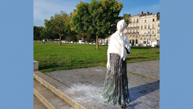 Mauvaise surprise ce lundi matin pour les Bordelaises et Bordelais qui empruntent le quai Louis-XVIII à Bordeaux : la statue à l’effigie de Modeste Testas a été à moitié recouverte de blanc. La peinture recouvre également les pavés situés autour de la sculpture ainsi qu’une partie de la plaque explicative qui évoque l’histoire de Marthe Adelaïde Modeste Testas, achetée comme esclave par deux frères bordelais à la fin du XVIIIe siècle avant d’être déportée à Saint-Domingue.
